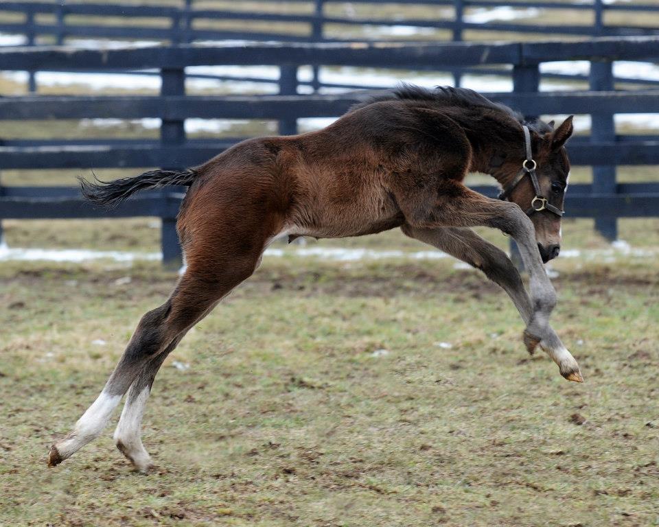 First 2013 colt of General AJ is already getting in the competitive spirit racing with his mother in the fields.