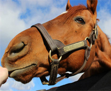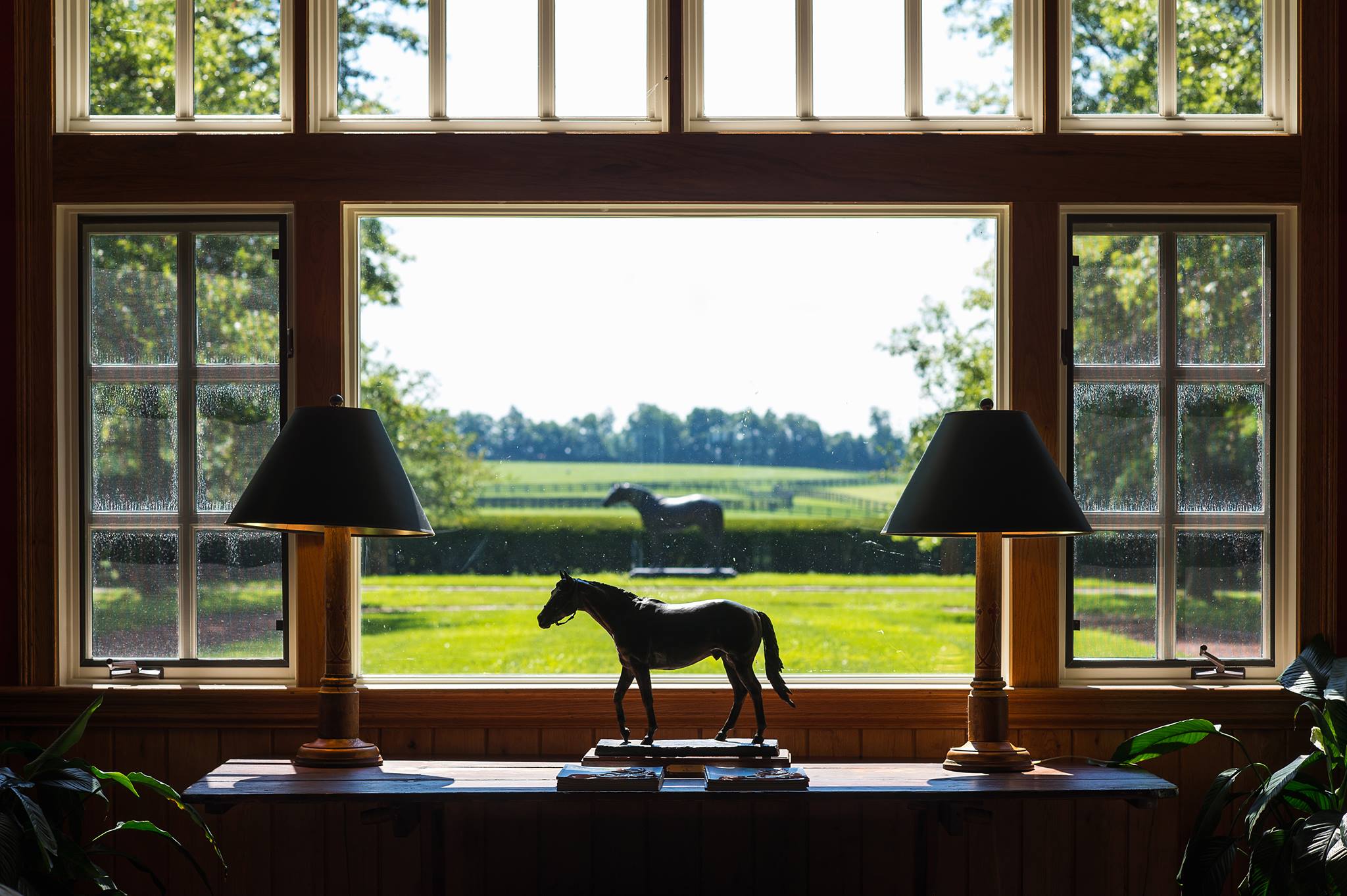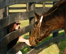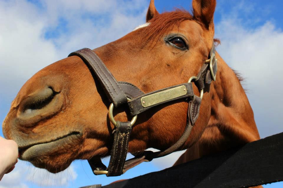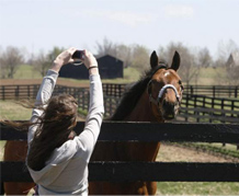 Even after racing leading sire Punchline enjoys posing for photos when visitors come to tour the farm.