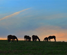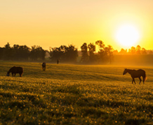 Weanlings at sunset getting in some last minute grazing before coming in for the night .