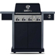 Side burner with 13,000 BTU Smoke Station drawer for woodchips 4 main burners at 10,000 BTU each 2 side shelves Porcelain coated cast iron cooking grates