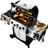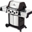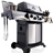 400 sq. in. primary cooking surface and 40,000 BTU Main Burner, 10,000 BTU Side Burner Reversible cast iron cooking grids and stainless steel Flav-R-Wave cooking system 3 stainless steel Dual-Tube burners Drop down side shelves and fully enclosed cabinet base 15,000 BTU Rear Rotisserie, Rotisserie Kit Included
