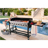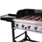 8 S/S 14,500 BTU Main Burners for total 116,000 BTU Output ~ Porcelain Wire Cooking Grids A heavy duty, yet portable unit featuring: 1,001 sq in of cooking surface with porcelain wire cooking grids, push button ignition, 8 Stainless Steel burners each with 14,500 BTU, an integrated foldable windshield, heavy-duty foldable cart for easy transportation, 2 dual stage regulators, and uses standard LP tanks which are not included. Ideal portability - cart collapses with grilling unit locking in it while you put the fitted PVC cover over unit with slots for carrying handles on each side to stick out. Set up dimensions are 73" L x 25.25" D x 36" H - but with the shelving sides open the 73" dimension goes to about 108".
